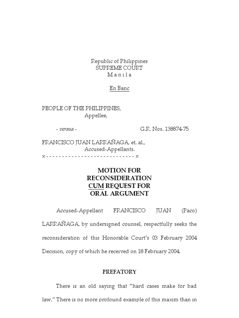 Motion For Reconsideration MARIBETH GOMEZ y BULALOC Download Free Motion For Reconsideration Of Prosecutor's Resolution a motion for reconsideration (mr) is a legal remedy available to a party who feels aggrieved by a court's decision. if notwithstanding the motion for reconsideration, the investigating prosecutor upholds the adverse resolution, the parties may file an appeal with the secretary of the department of justice (doj) under doj circular 70 of 2000 or the nps rule. Motion For Reconsideration Of Prosecutor's Resolution.